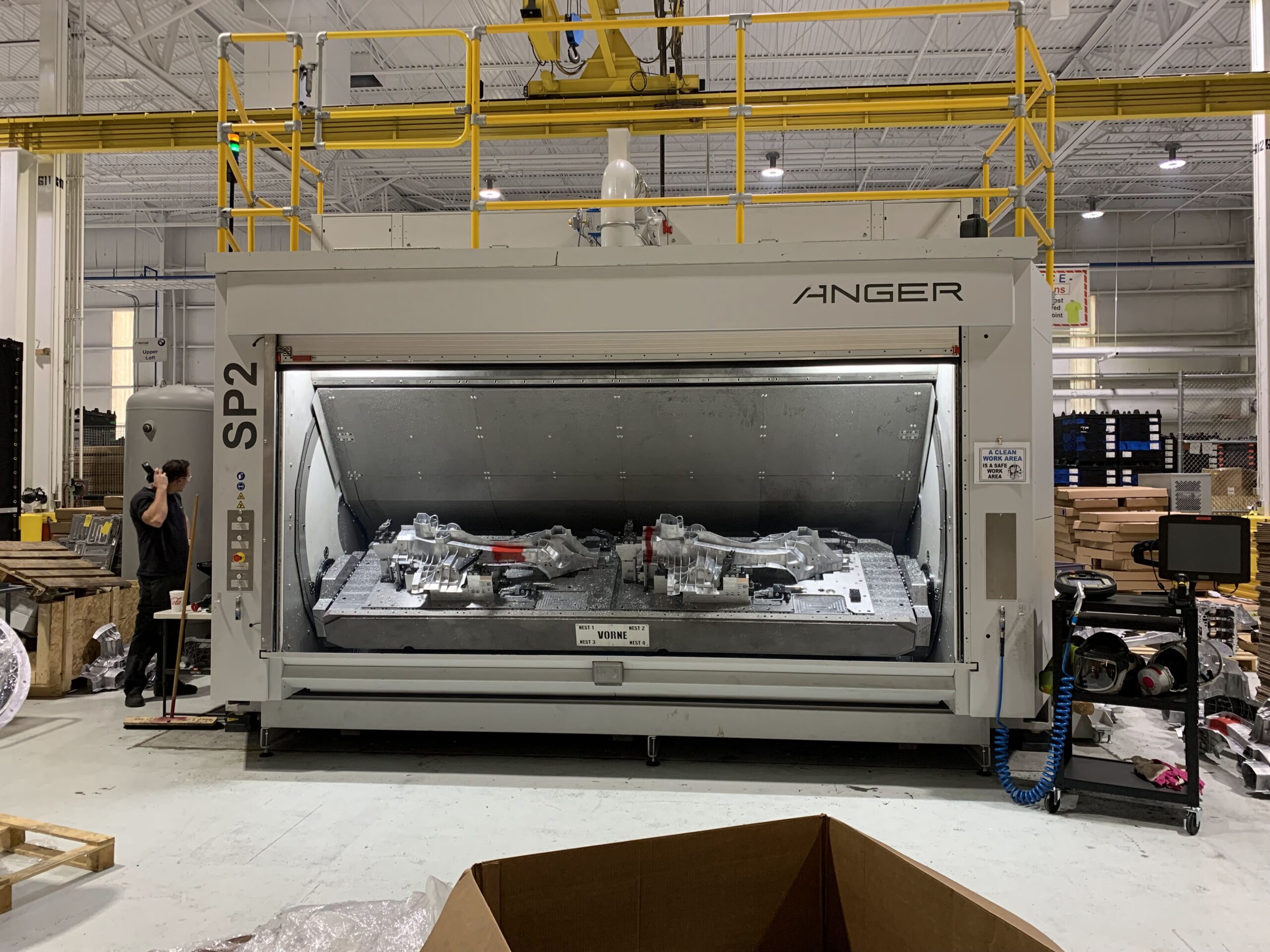 Die spanende Bearbeitung dieser Gigacast Strukturbauteile erfordert ebenso große CNC-Bearbeitungsmaschinen. ANGER Machining hat mit der SP2-D und SP2-P die passende Lösung für Teile von bis zu 3,5 x 1,2 Metern, mit der Meteor 3000 besteht sogar die Möglichkeit, Teile in einer Größe von 3,2 x 1,8 Metern zu spannen und doppelspindelig zu bearbeiten.